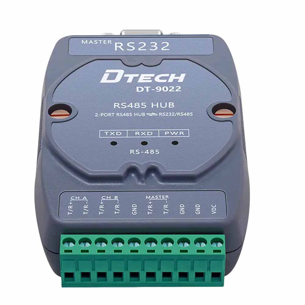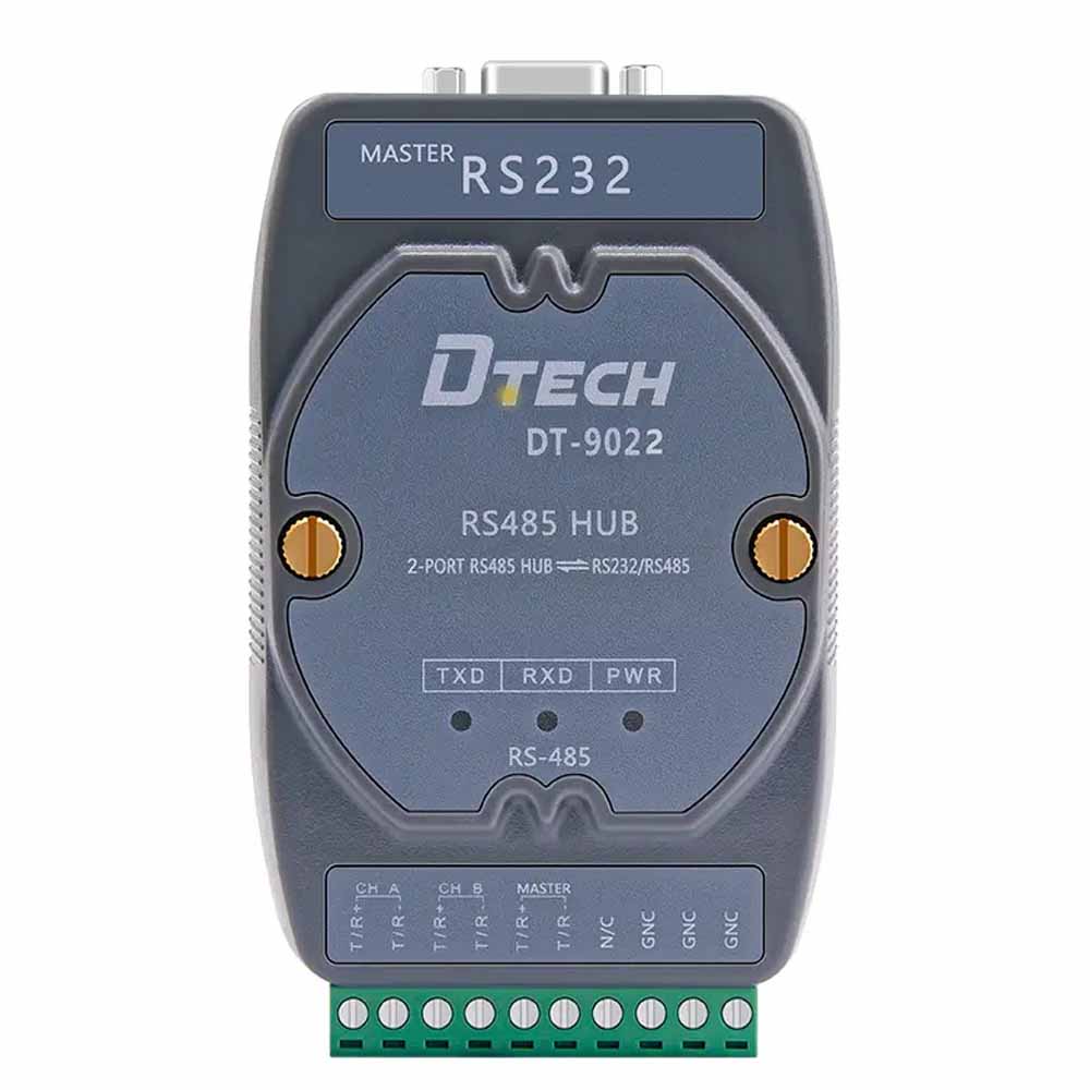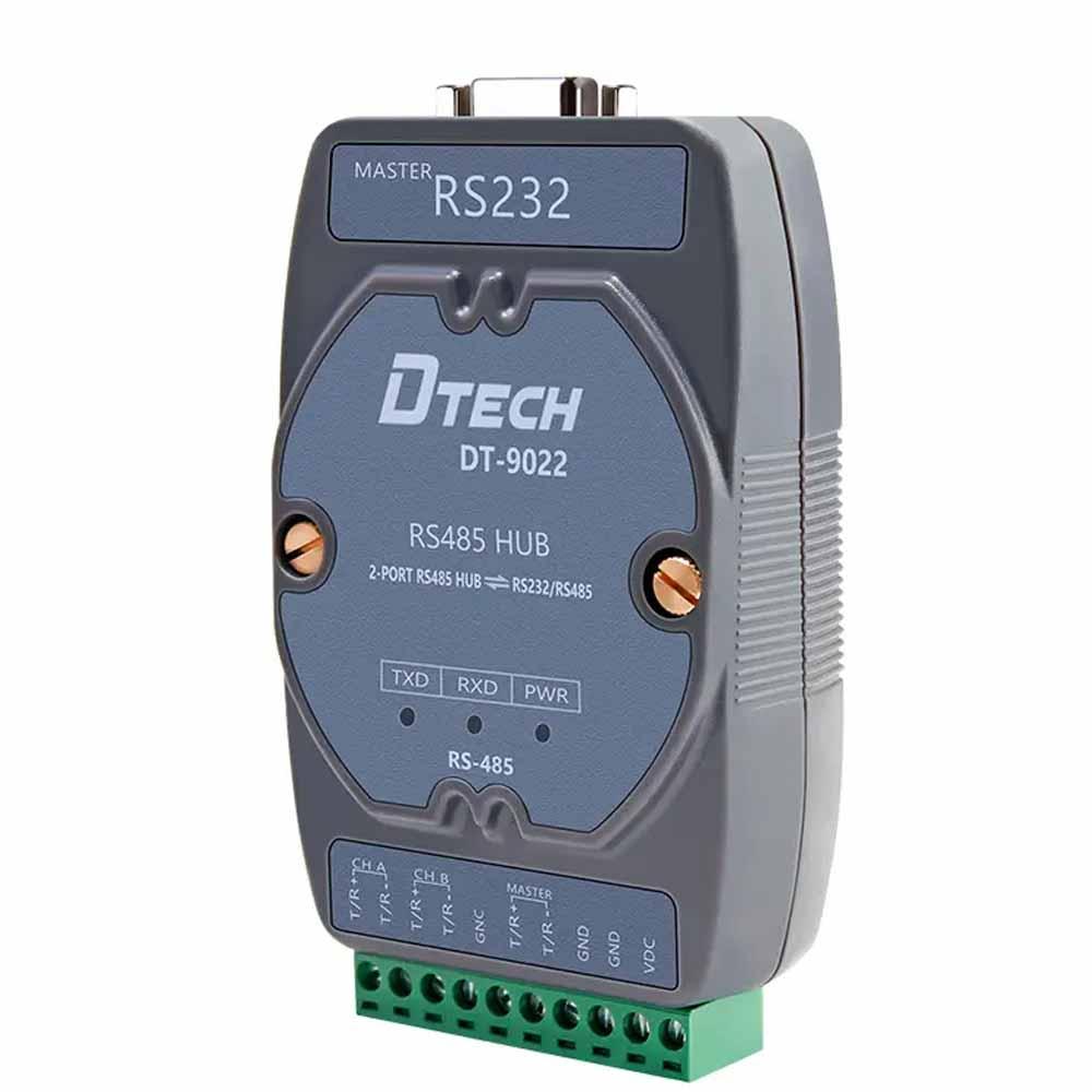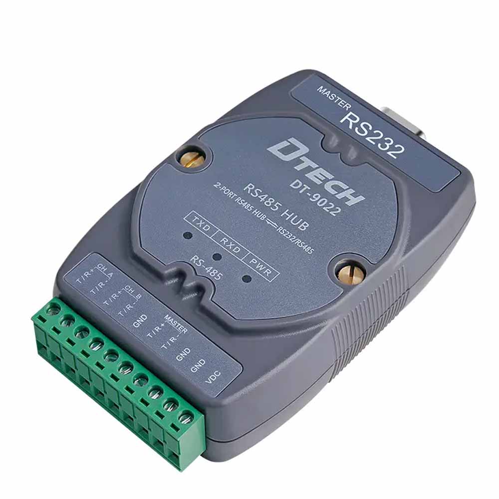 DT-9022 is a universal industrial two port RS485 adaptive relay hub, with a main RS232/RS485 port, the RS485 hub is designed specifically for the needs of RS485 transmission distance and large capacity serial communication network expansion. With a number of independent innovation technology of DTTEC, including built-in data collision protection control etc.