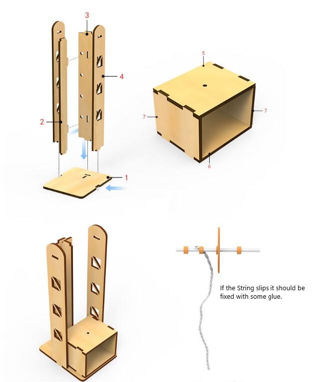 The Elevator Friction Torque Principle Assembly Model DIY Kit made from Medium-Density Fiberboard (MDF) is a set designed for assembling a model that demonstrates the friction and torque principles utilized in elevators. Here’s a description: