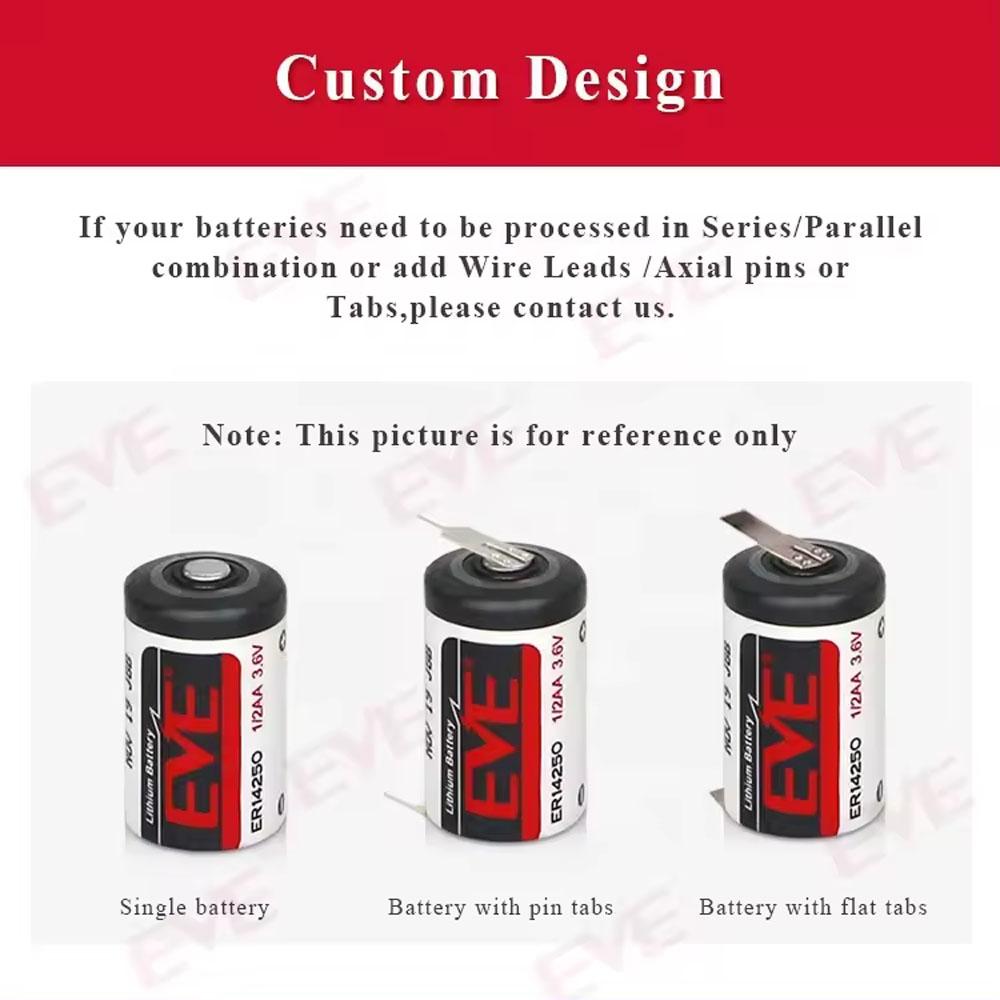 The EVE Energy ER14250 is a high-performance, 3.6V lithium battery, ideal for a variety of applications requiring long-lasting, reliable power. Its compact size and high energy density make it suitable for devices such as smart meters, security systems, and medical instruments.