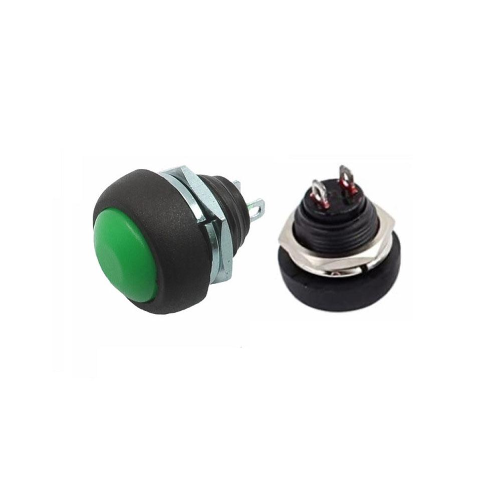 1 x Green Waterproof PBS- 33B 12MM 2PIN Self-Reset Mini Round Push Button