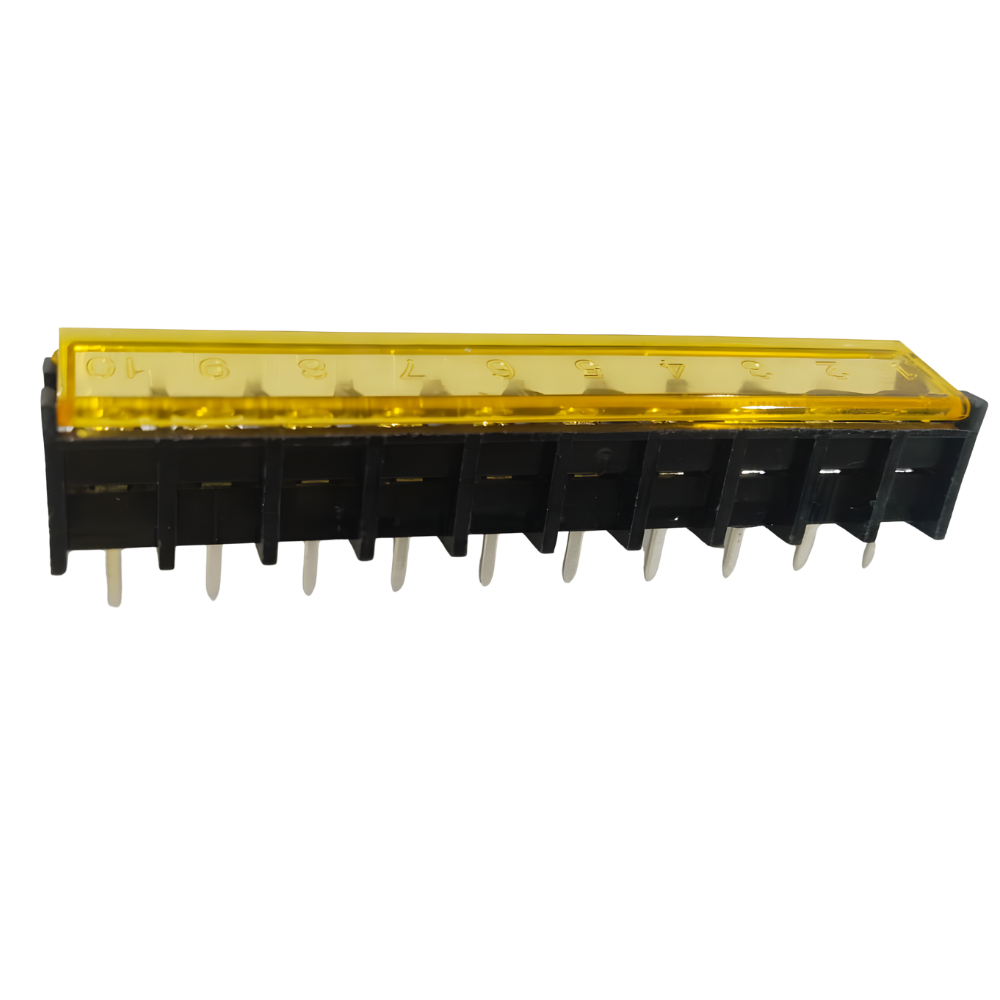 The 10-Pin Barrier Terminal Block Connector with Flap Cover Lid is a high-quality connector designed for safe, reliable, and organized electrical wiring. It features ten screw terminals separated by insulated barriers that prevent short circuits and ensure proper electrical isolation between connections. This makes it ideal for use in control panels, automation systems, power distribution boards, and industrial machines.