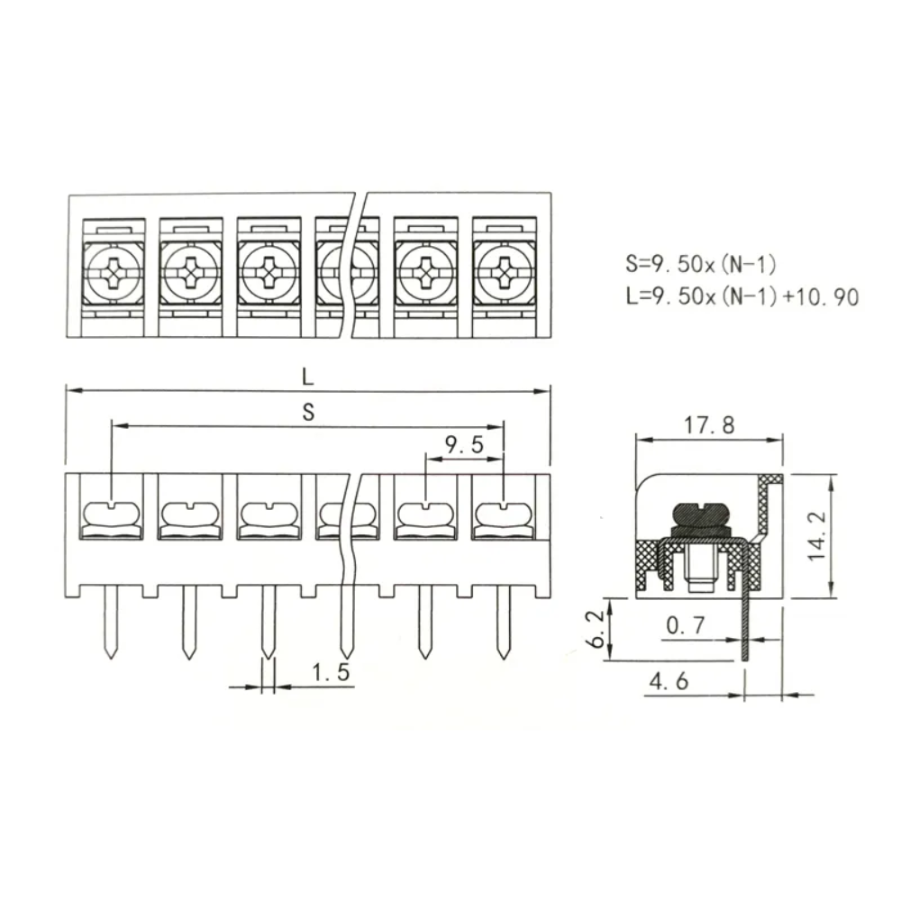2 x HB9500s Power Terminal Block Pitch 9.5mm 300V 25A