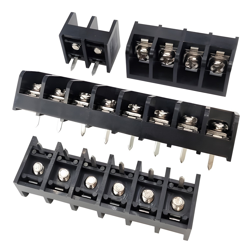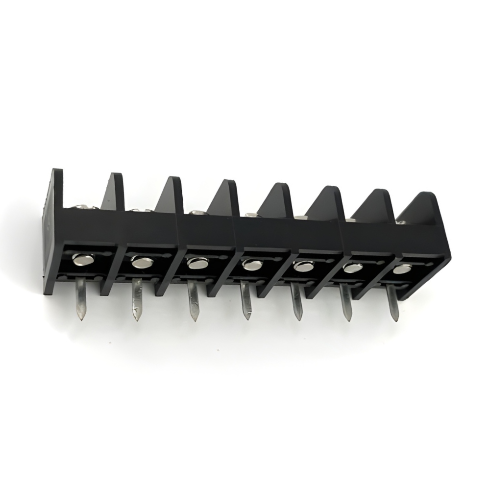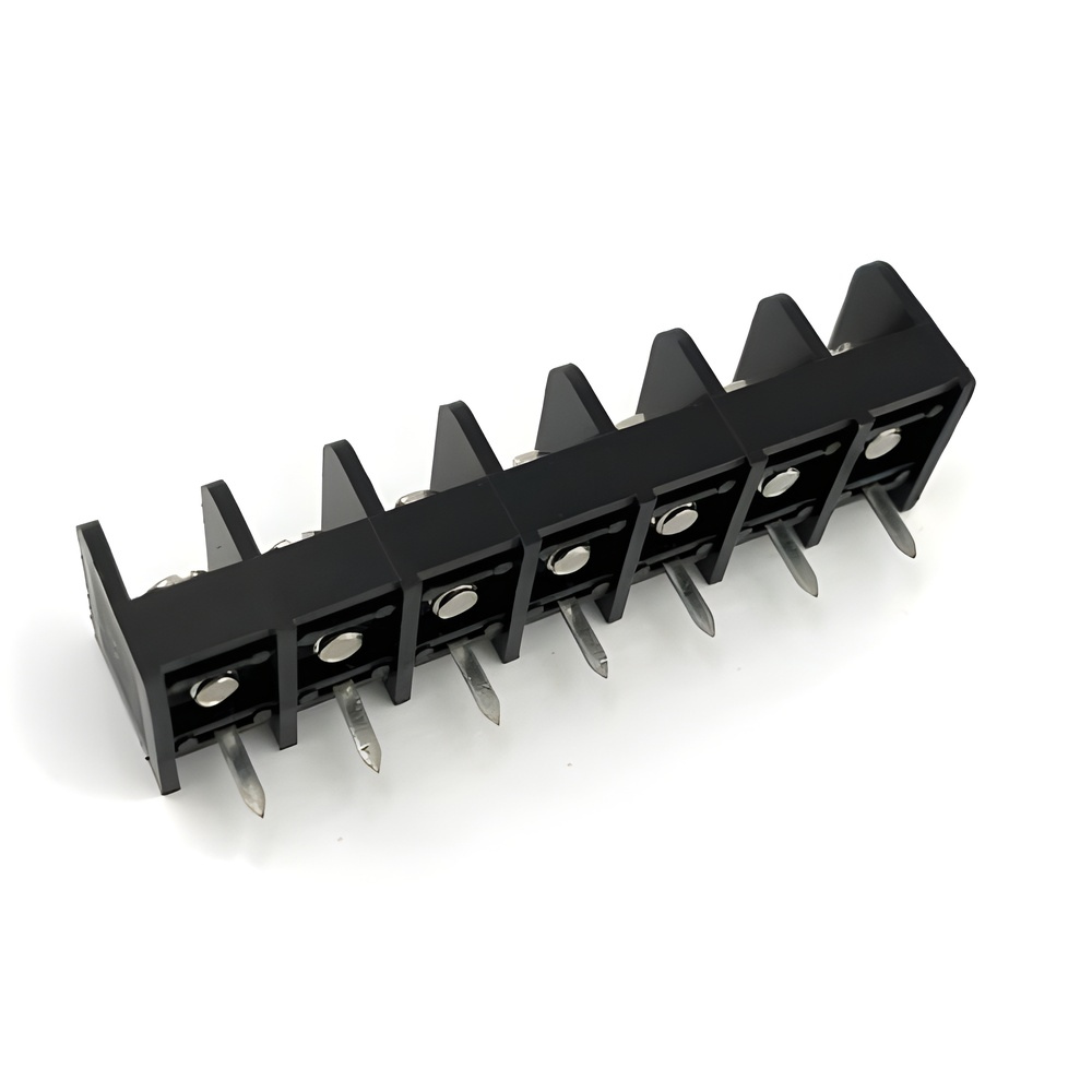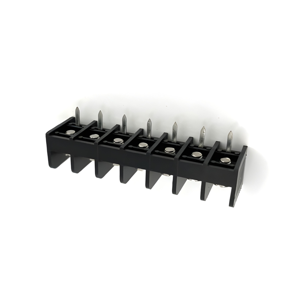 The HB9500 Power Terminal Block is a robust, electrical connector specifically designed for secure, high-current connections to a Printed Circuit Board (PCB). Its primary feature is a generously wide 9.5mm pitch (center-to-center spacing between pins), which is essential for safely accommodating the thicker wire gauges (typically 22-14 AWG) required by its high electrical ratings.