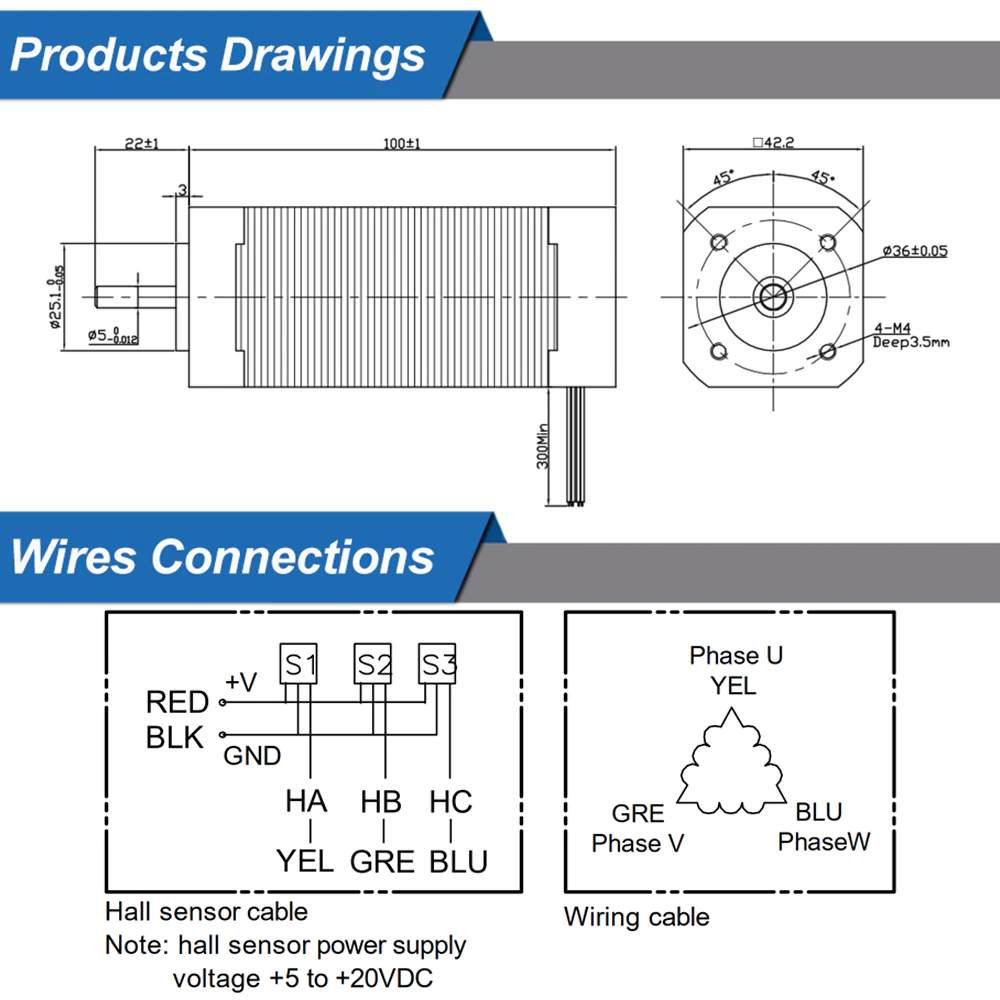• Motor Dimensions: 42mm square frame