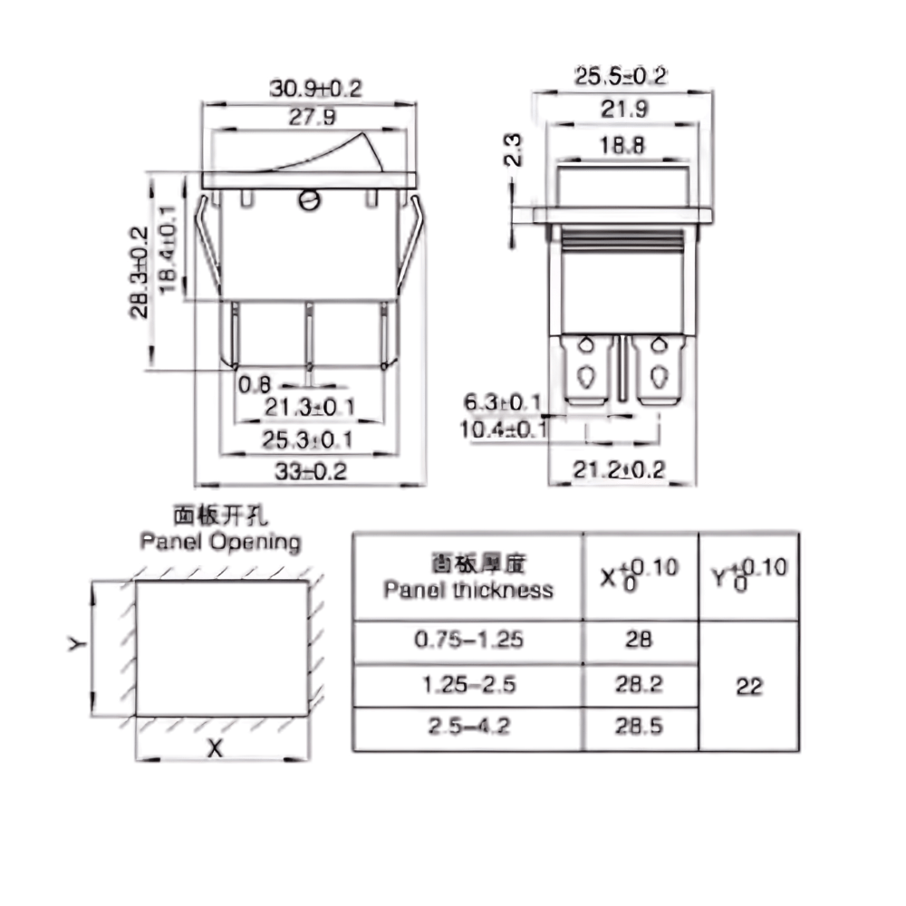 KCD2 Cover: Made of flexible silicone or rubber, it fits KCD2 series switches, offering dustproof and waterproof protection. Dimensions are around 25mm x 31mm.