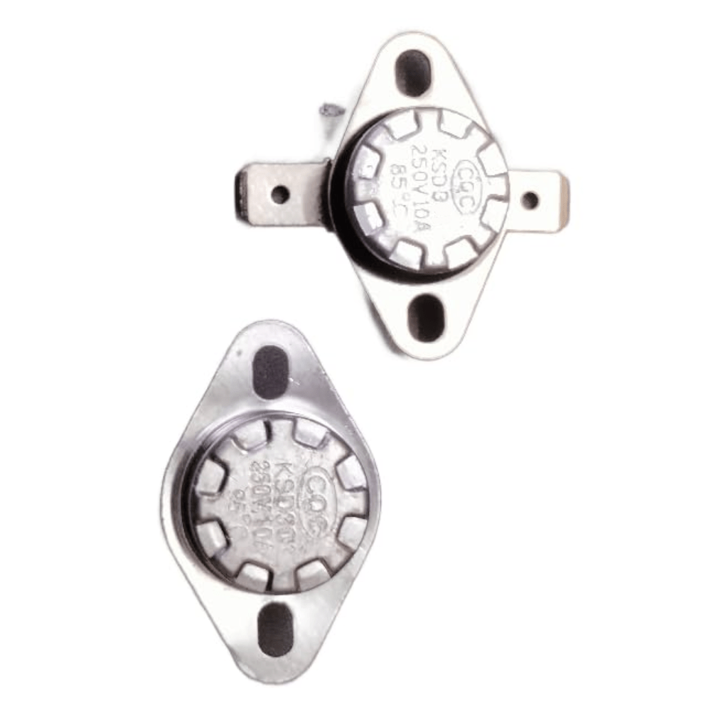 KSD301 85°C Thermal Control Switch 250V 16A NO (Normally Close) The original state of the temperature control switch contact is Close, and Open when the temperature sensing exceeds the rated temperature.  This KSD301 thermostat is used widely for coffee makers, water heaters, immersion heaters, electric cookers, microwave ovens, automatic toasters, etc. It is Open until the temperature reaches 85 Celsius degree, then the switch Close. Widely used for temperature control or protection for household electric appliances. Widely used for temperature control or protection for household electric appliances.