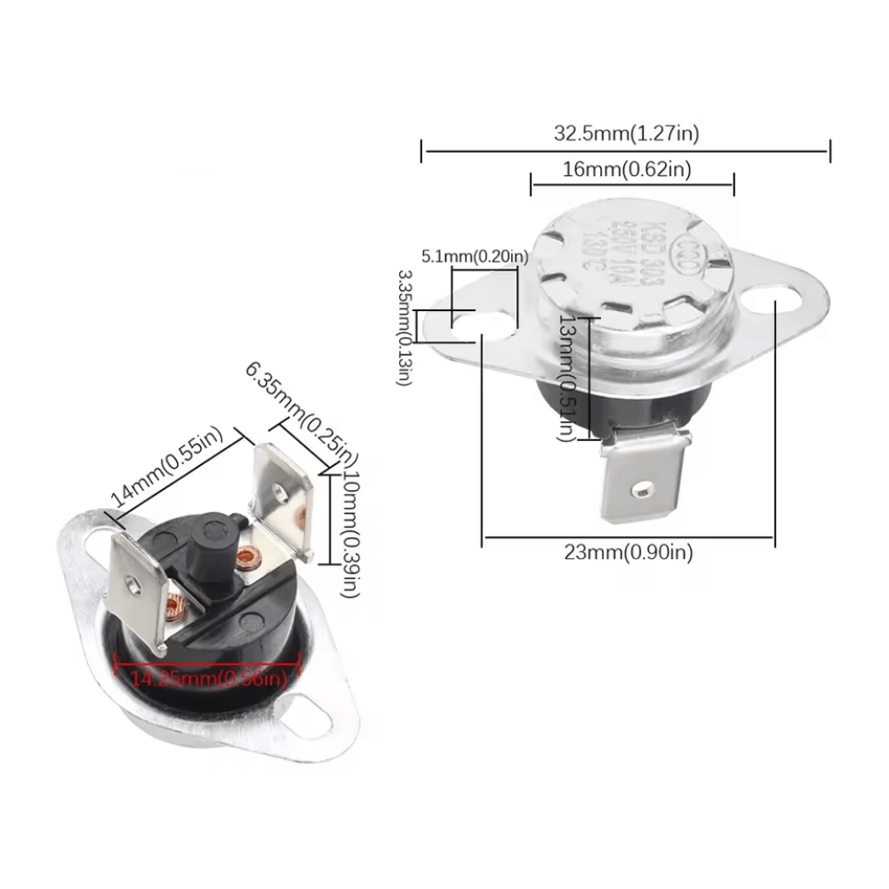 KSD301 NO 250V 16A 85′ C Manual Reset Button