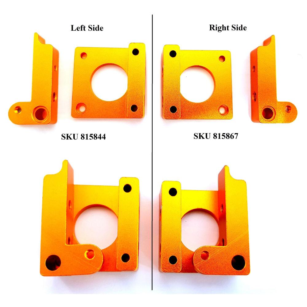 The MK8 Extruder is available in 3 different types – Right Side, Left Side and Right Short. These extruders differ in the direction in which the filament is extruded with respect to the extruder block. When using single extruders, any extruder can be used. When using dual extruders you can use one right side and one left side extruder as shown in the product image.