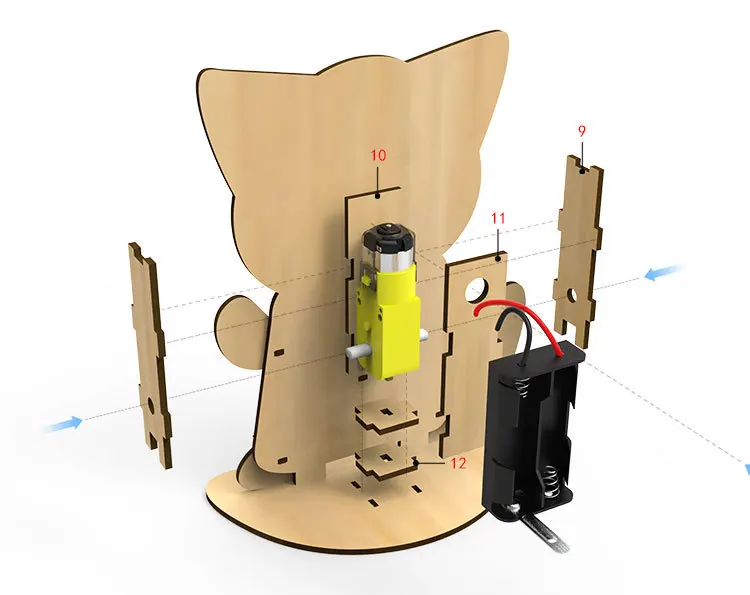 Made from MDF, the kit includes various components and materials necessary to construct the lucky cat experiment set. It often includes pre-cut MDF pieces, screws, fasteners, and other assembly materials.