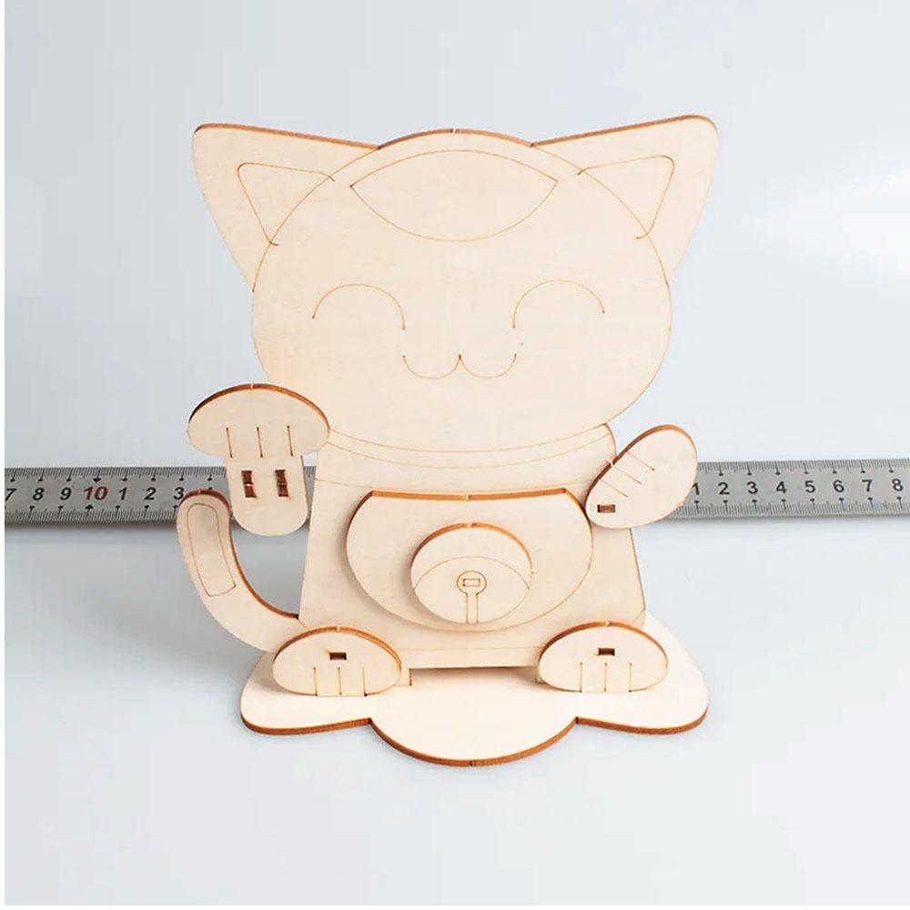 Overall, the Lucky Cat Children’s Scientific Experimental Equipment Set is a DIY kit made of MDF, aiming to engage children in hands-on learning about scientific concepts while assembling and experimenting with a model of the lucky cat.
