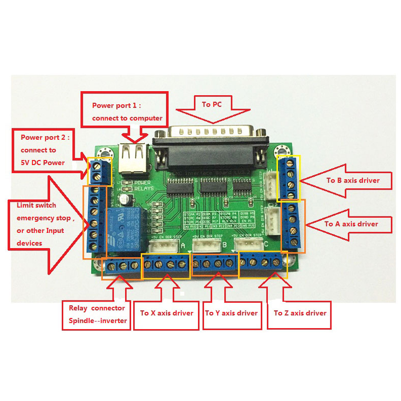 1 x MACH3 Interface Board CNC 5 Axis with Optocoupler for Stepper Motor Driver