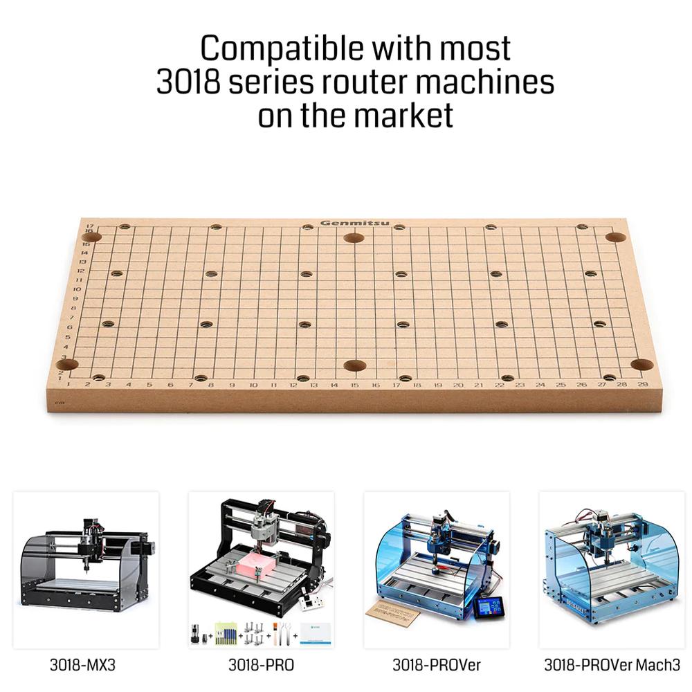 A spoil board is a disposable workbench mounted above the router’s table. It can protect the router table from damage as well as being an expendable surface that can participate in work holding. MDF is very dense translating into more weight with enhanced strength and durability. Perfectly compatible with ALL 3018 series CNC router kit.