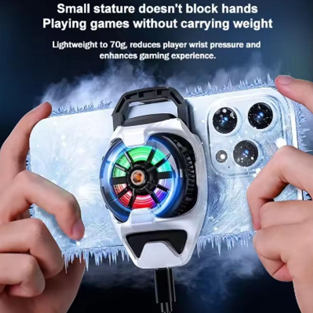 The MEMO DL21 Back Clip Mobile Phone Cooler features a high-power cooling fan with dual temperature displays and vibrant RGB LED lighting. Designed for efficient heat dissipation, it ensures optimal performance for cell phones during intense gaming or prolonged use.