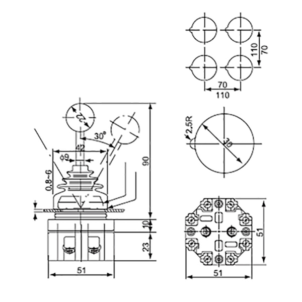 The Monolever Switch CMR-212 is a robust, single-axis control switch featuring a self-locking mechanism. This switch is designed for applications requiring precise control and maintained position, commonly used in industrial machinery, heavy equipment, and other environments where reliable control input is critical.