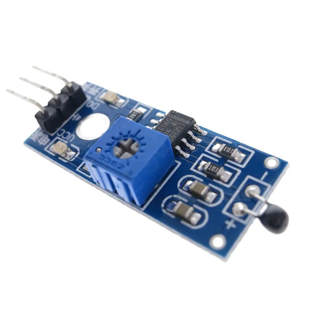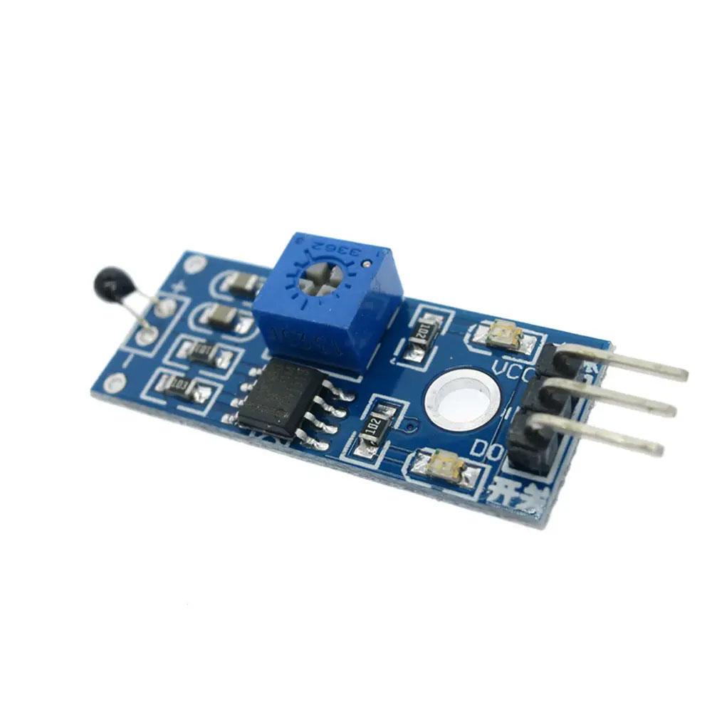 NTC Thermistor temperature sensor module is low cost, small size module. It is very sensitive to ambient temperature. It is generally used to detect the temperature of the surrounding environment. Through potentiometer adjustment, it is possible to change the temperature detection threshold. DO output can be directly connected to the micro controller to detect high and low, by detecting temperature changes in the environment.