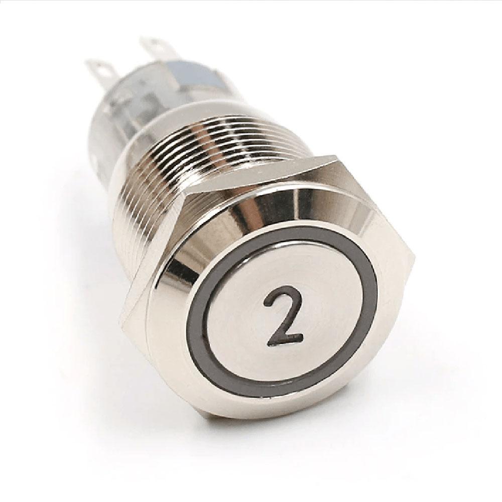 1 x 16mm 12V to 24V White Number 2 Engraved Switches Non-Latching