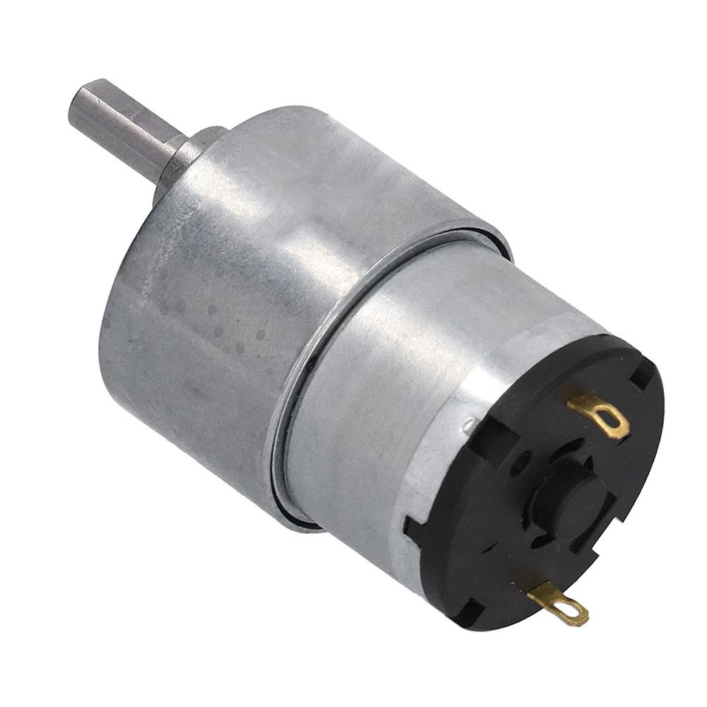 A geared DC Motor has a gear assembly attached to the motor. The speed of the motor is counted in terms of rotations of the shaft per minute and is termed as RPM. The gear assembly helps in increasing the torque and reducing the speed. Using the correct combination of gears in a gear motor, its speed can be reduced to any desirable figure. This concept where gears reduce the speed of the vehicle but increase its torque is known as gear reduction.