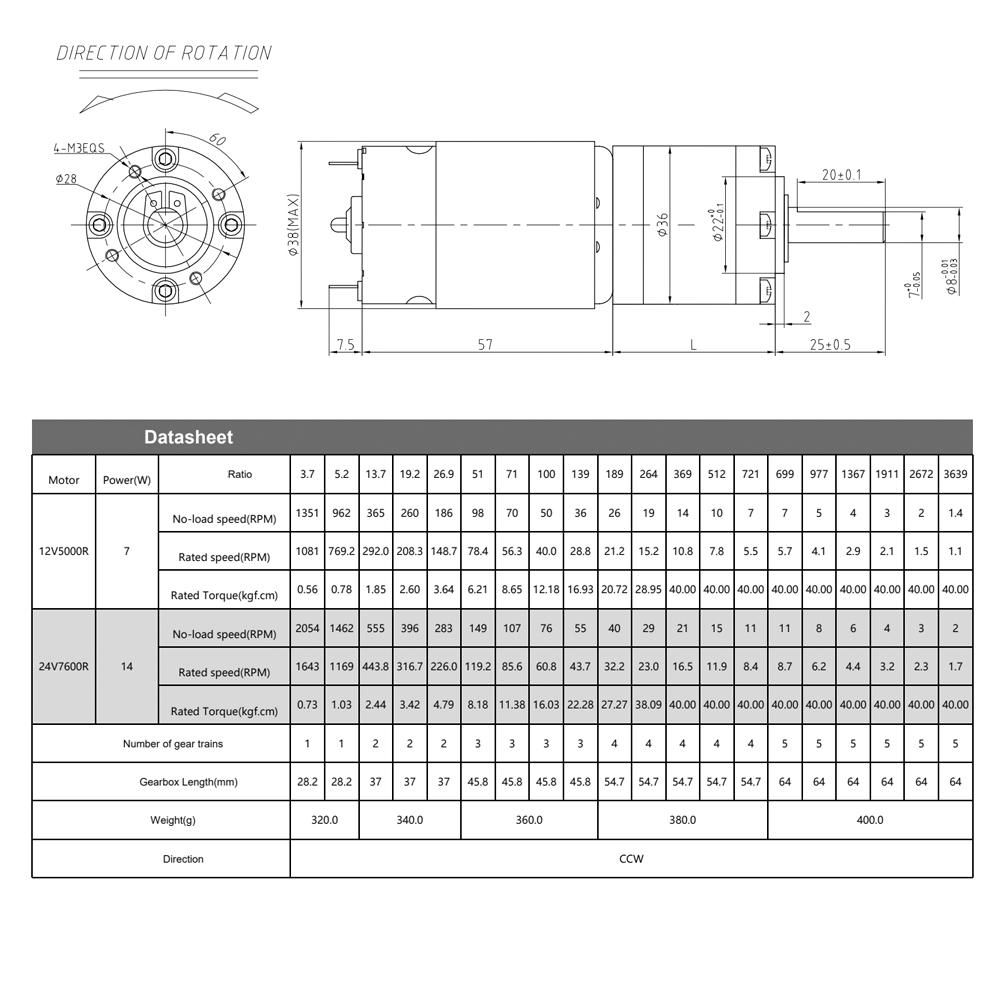 • Gearbox & Motor Dia: 36mm