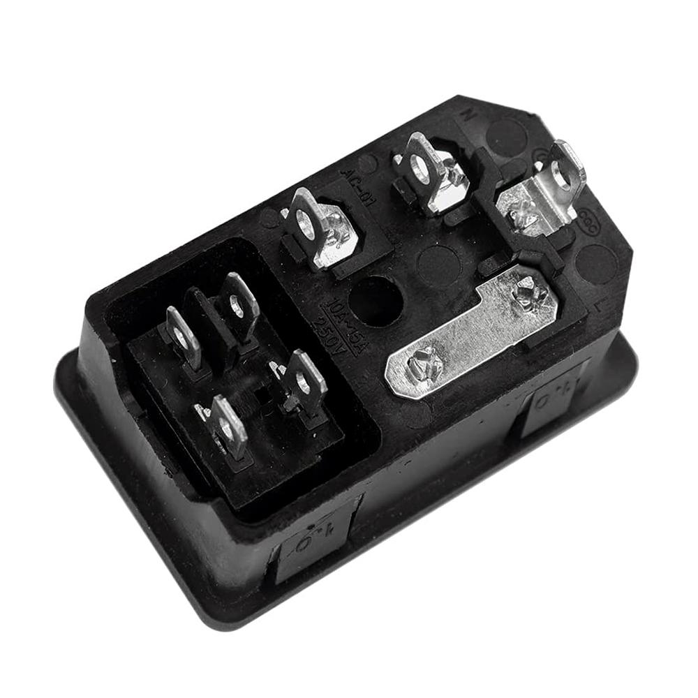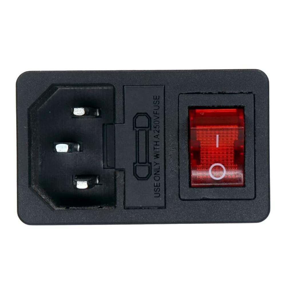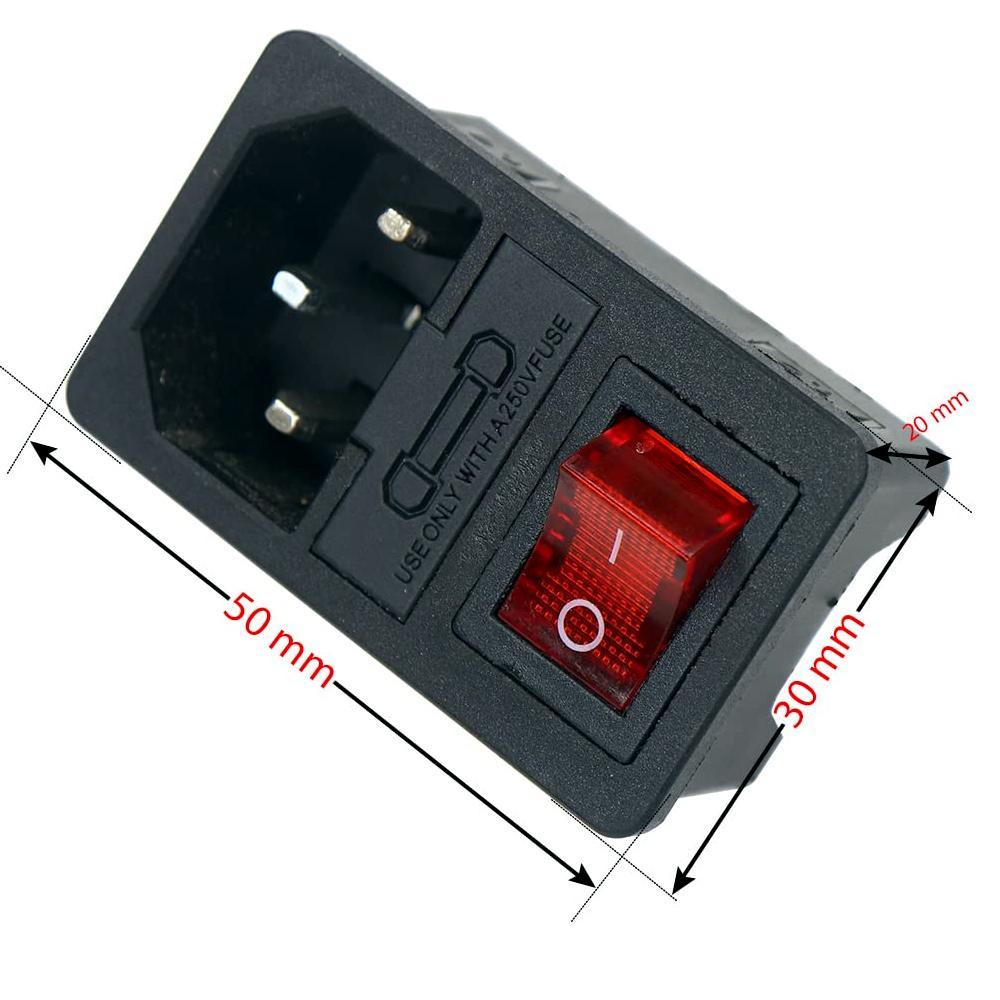 IEC320 C14 male plug, 3-pin terminals, durable material construction, long using life. This power socket is fitted with Neon Indicator On/OFF switch and fuse. Used widely in lab equipment, fitness equipment, industrial automation equipment, etc. Fit for a fuse with 5x20mm size. Use only with a 250V fuse (Fuse is not included).