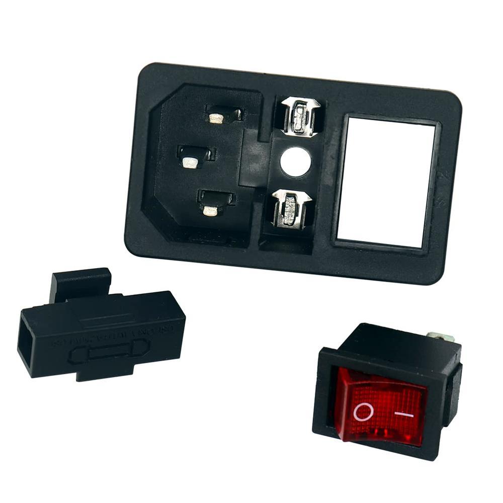 Power Switch AC 3pin AC Power Socket with Red Rocker Switch with Protection Fuse