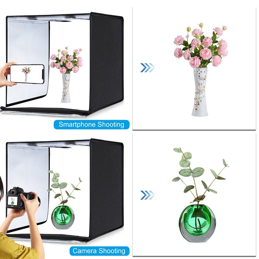 5. Super bright to provide the adequate light source. This light combined with the silver reflective interior of the tent, provides even lighting to minimize shadows. Your photo will be with pure white background and you do not even need to have the photo copped.