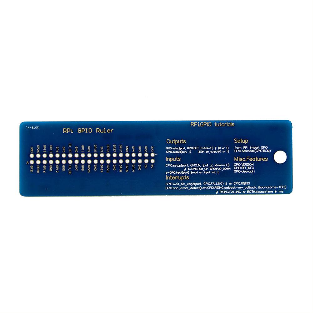 This GPIO Ruler is the ideal quick reference for RPi.GPIO hacking on the Raspberry Pi in Python. It has all the most commonly used RPi.GPIO code, which can be hard to remember. This Ruler can be used as both cm and inches ruler. It fits easily in a pencil case, toolbox or desk tidy.