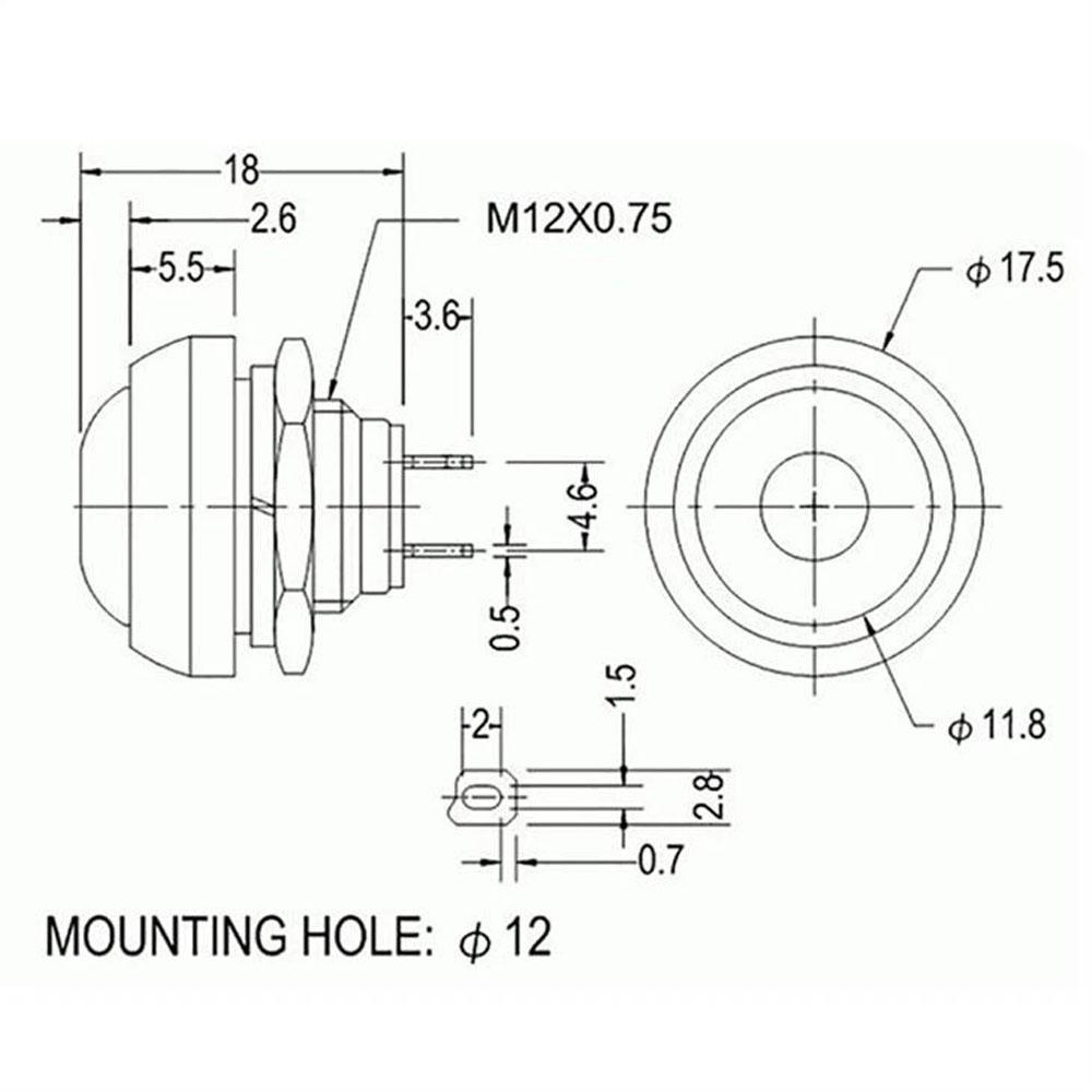 1 x Red Waterproof PBS- 33B 12MM 2PIN Self-Reset Mini Round Push Button
