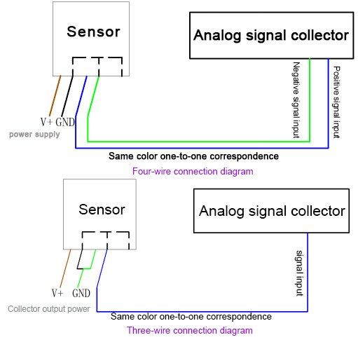 NOTE:Â Two types wire methods 1.Four-wire connection diagram 2.Three-wire connection diagram |