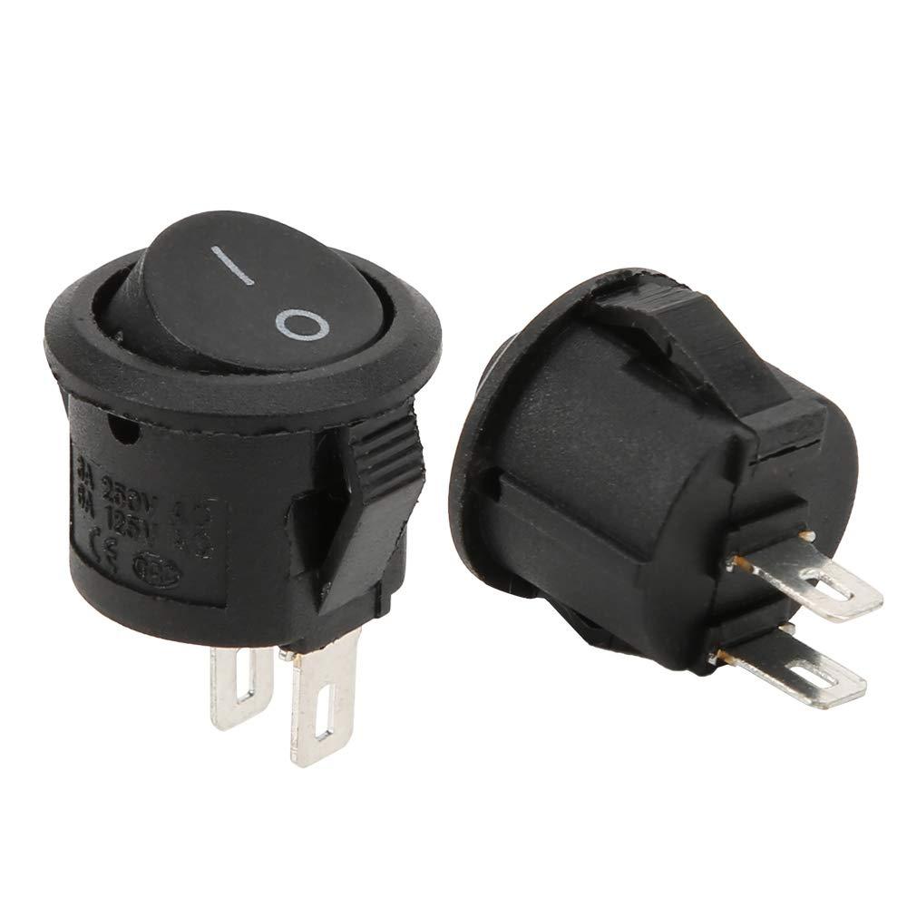 S.P.S.T. Round Rocker Switch, Black (2 Pcs)
