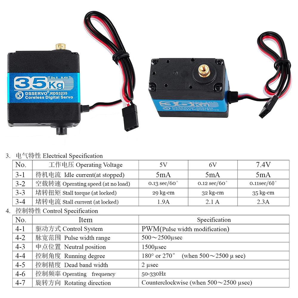 Datasheet of Servo Servo 35KG RDS3235 180Deg Metal Gear Digital Servo Motor Arduino High Torque