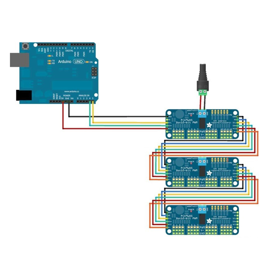 • It’s an i2c-controlled PWM driver with a built-in clock. That means that, unlike the TLC5940 family, you do not need to continuously send it signal tying up your microcontroller, its completely free running!