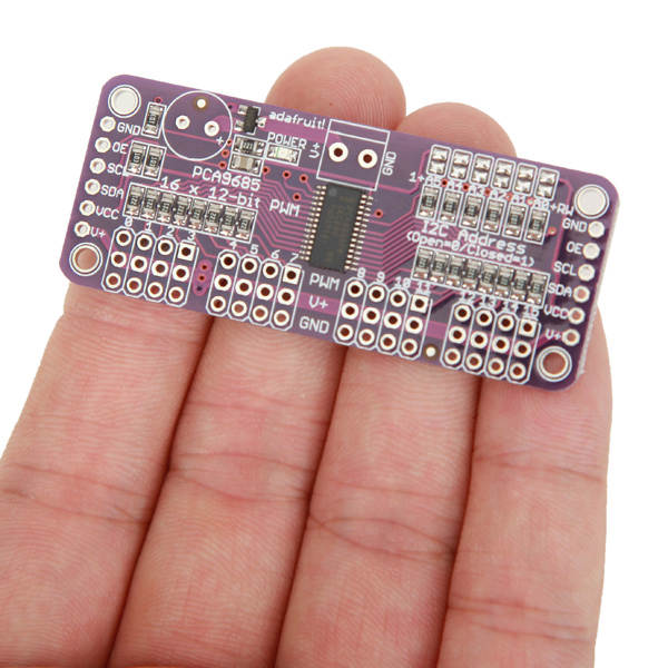 • It’s an i2c-controlled PWM driver with a built-in clock. That means that, unlike the TLC5940 family, you do not need to continuously send it signal tying up your microcontroller, its completely free running!