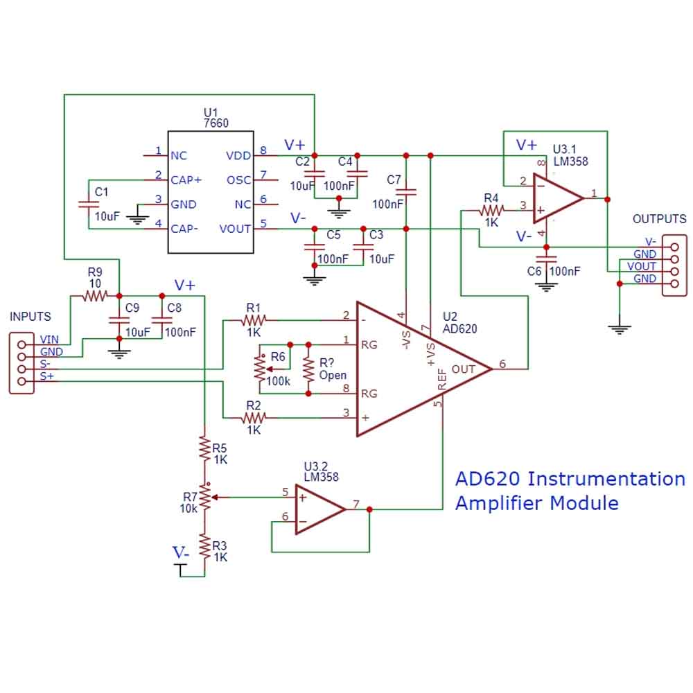 AD620 Instrumentation Amplifier Module Reverse Engineered Schematic