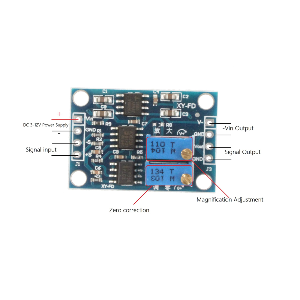 The AD620 instrumentation amplifier module provides a platform for amplification of small AC or DC signals from analog sensors, strain gauges, transducers and similar devices.
