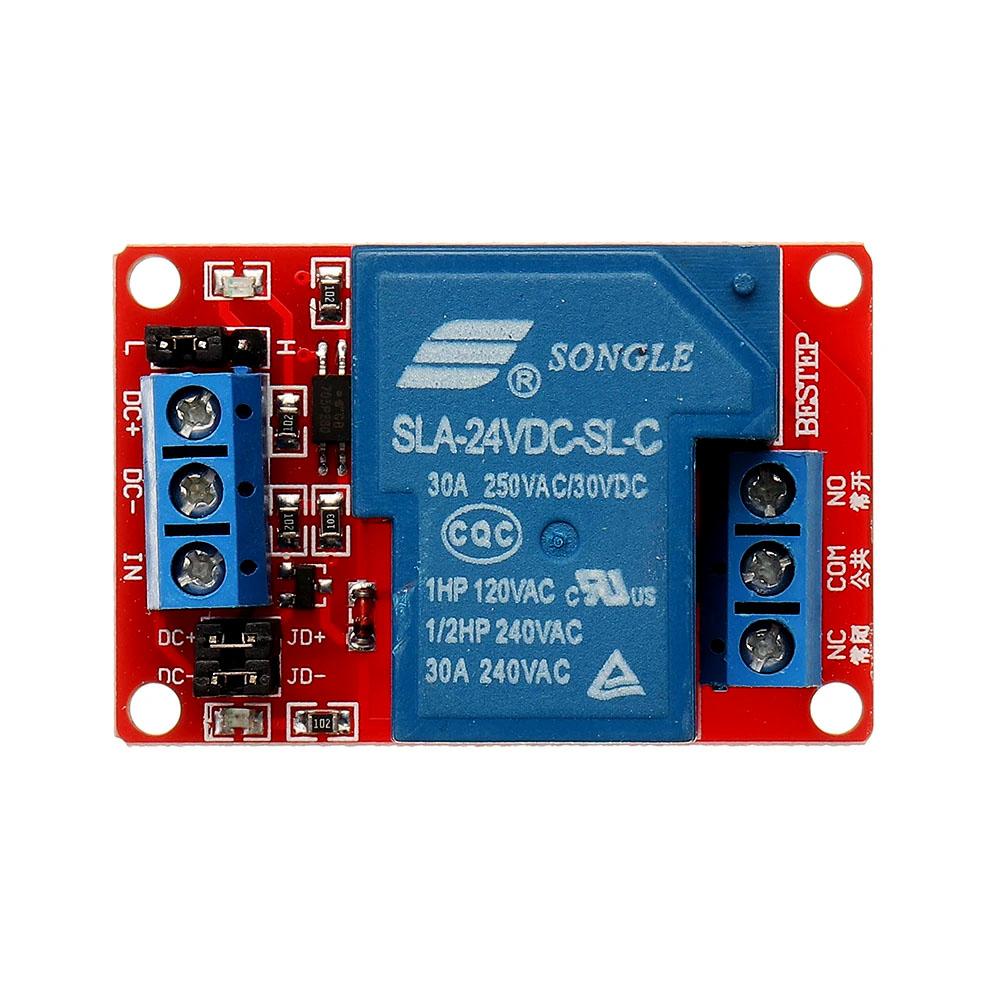 The Songle Single-channel 24V 30A Relay Module power failure relay is a 1-channel relay module board with LED indicators, It can be controlled by microcontrollers such as Arduino, AVR, PIC, ARM any other microcontroller operating at 5V.