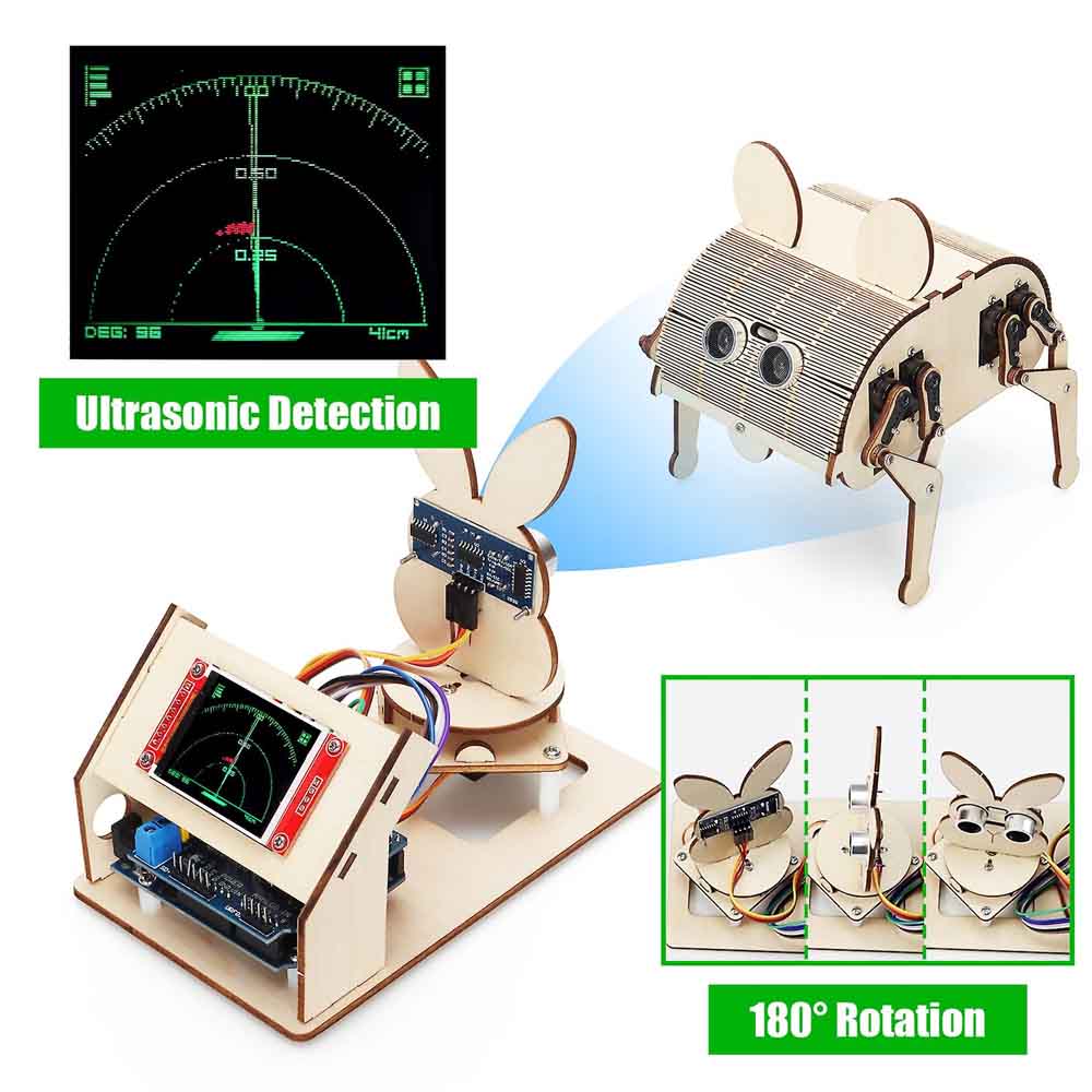 Ultrasonic Radar Wooden Kit Arduino Uno Base