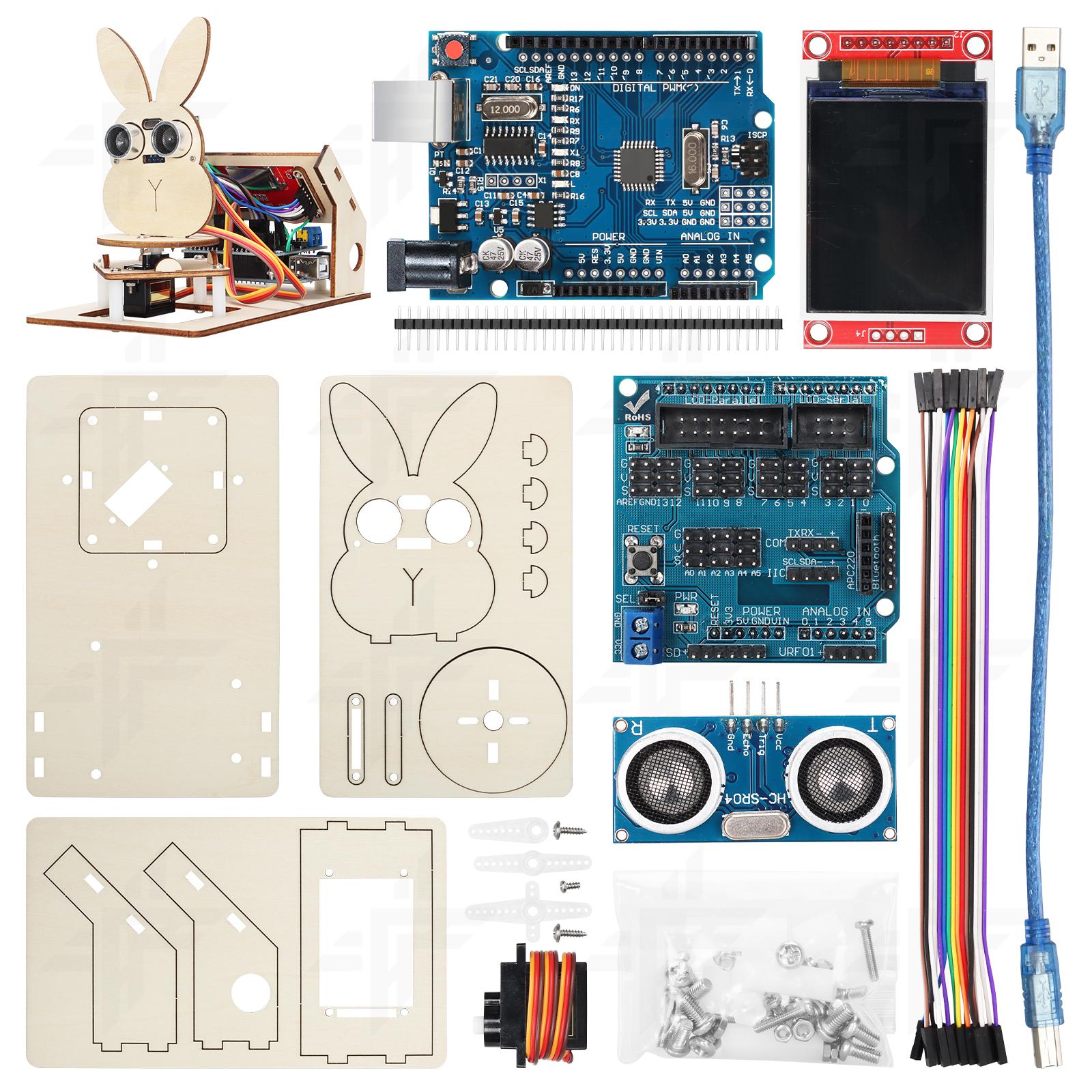 This kit comes with V3.0 micro controller board which is based on ESP8266, an economical and powerful chip which supports wi-fi and IDE.