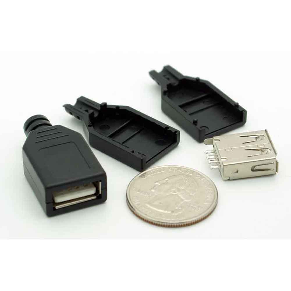 This is a USB A-type Plug Female PCB R/A Connector. It complies with the Universal Serial Bus implementers forum. The USB 2.0 architecture allows transmission speeds up to 480 Mbit/s (60 MB/s).  The benefits of using USB 2.0 are reduced transmission times and power consumption.