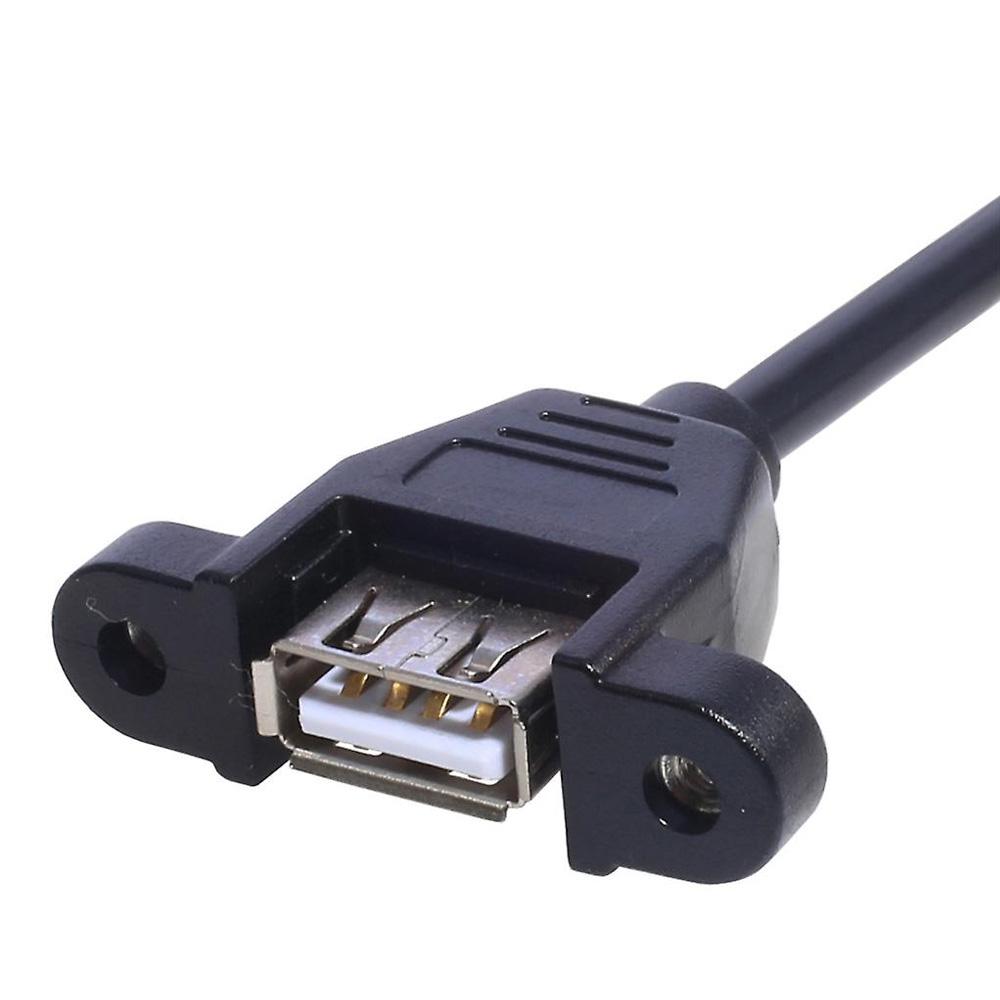 USB 2.0 Type-A Male to Type-A Female Panel Mount Extension Cable. USB Type-A Male to Type-A Female Panel Mount Extension Cable. USB 2.0 cable with a Type-A male on one end and a Type-A female on the other. Used to extend USB cables. High-Speed Data transfer rate of up to 480 Mbps and backwards compatible with USB. This USB 2.0 Male-to-female extension cable is for the extension of USB cables or devices with a standard USB type A plug. This product is known as A type USB cable, M/F, USB A to A Male Female Cable, USB A to A Male Female Extension Cable, USB Cable, USB cable extension, USB Extension Cable, USB Male to Female Extension Cable, USB port extension cable.
