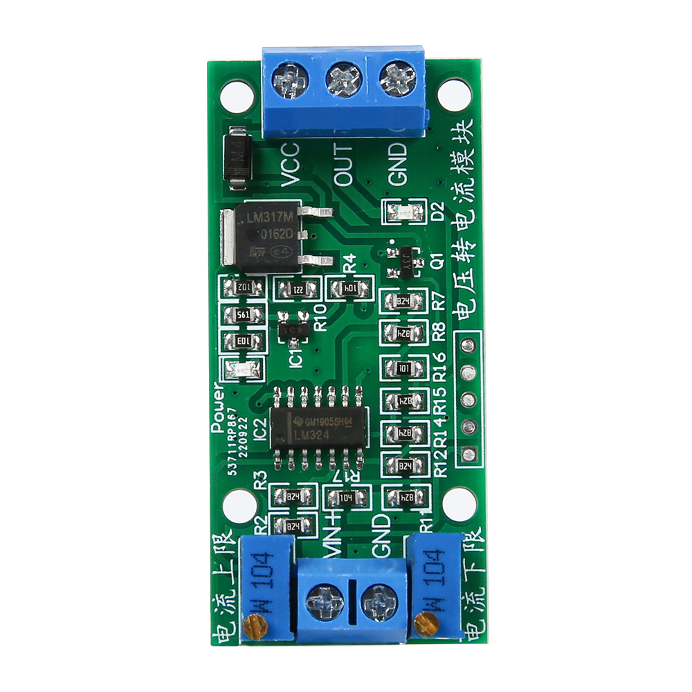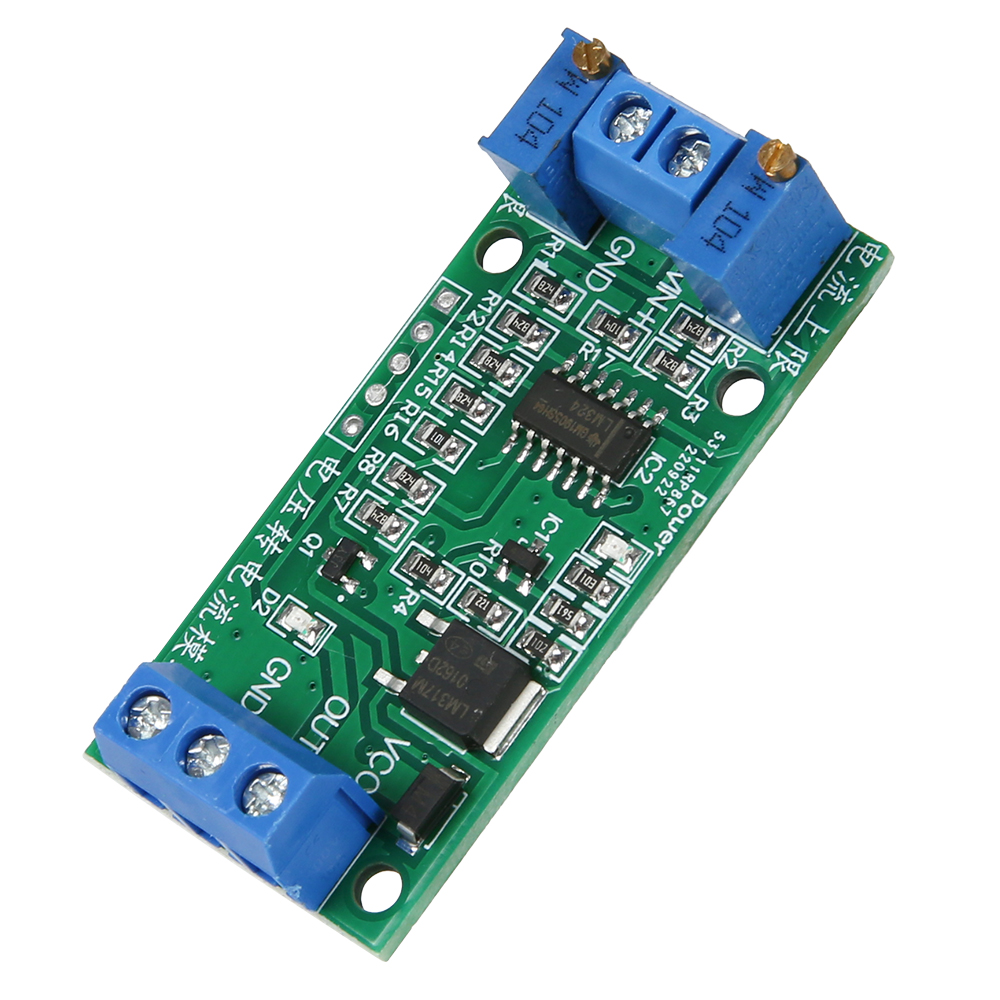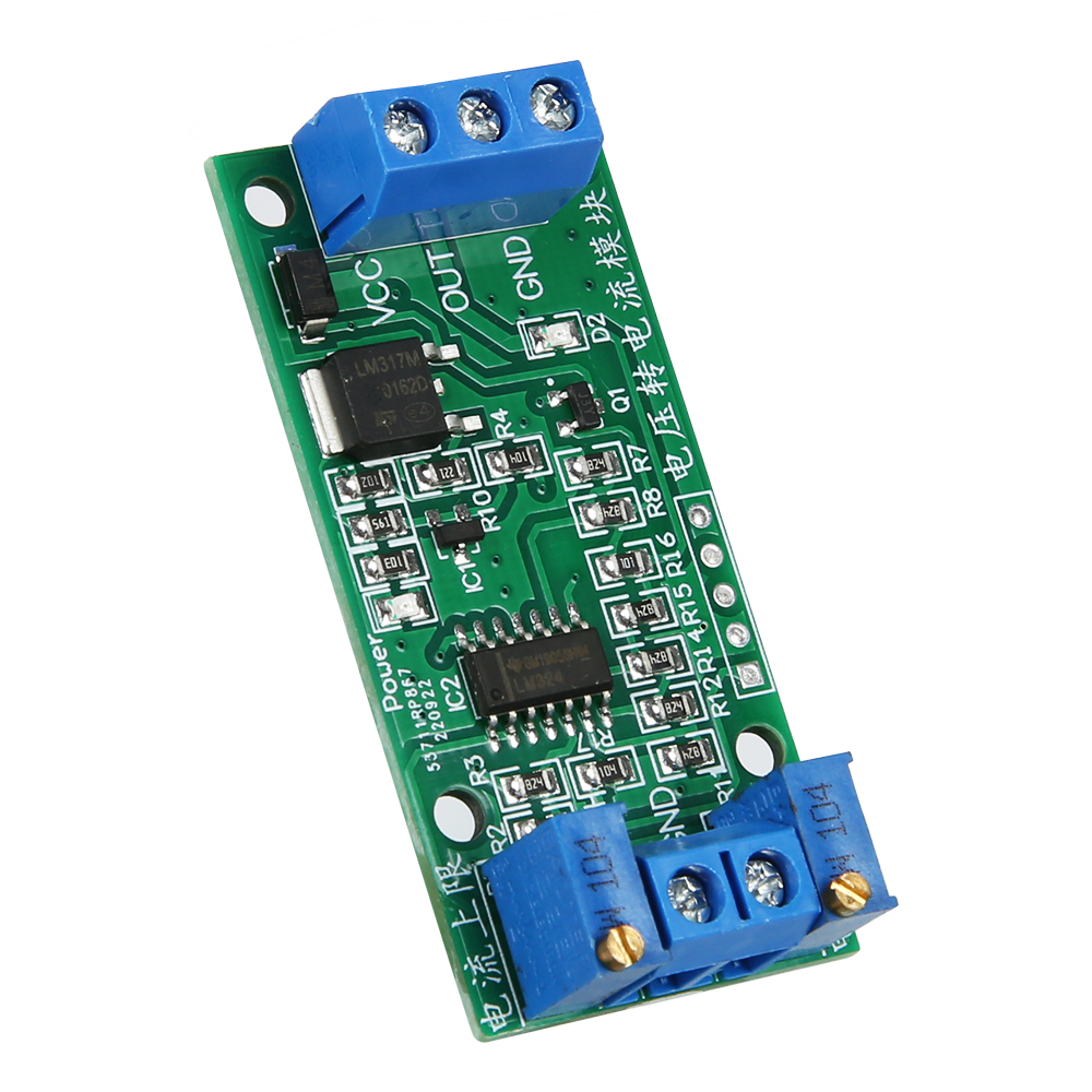 The voltage switch current module can convert a 0-3.3V voltage signal into a 4-20mA current signal. In the process of signal transmission circuit voltage signal will become weak with the transmission distance increased, the transmission can be avoided using a weak electric current signal.