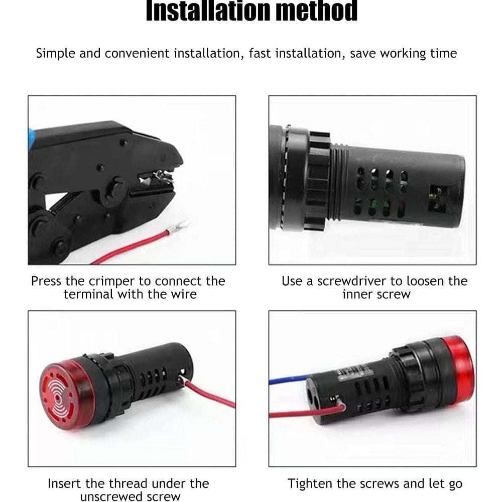 Avoid conventional color bulbs to monitor a phase/line signal, and replace them with these new powerful LED Signal Indicator Built-in Buzzerwith various advantages over the old bulbs. This New pilot lamp uses LEDs as a light source which is energy-saving &Built-in Buzzer, small and compact, and highly durable which adds a systematic and classy look to your control dashboard or signal monitoring spot on any device or chassis. The cover of this pilot indicator is made of PC plastic to provide good shock resistance and can be used as an indication for pilot lights, accident signals, or other power availability check signals in the circuits of telecommunication and electrical apparatus