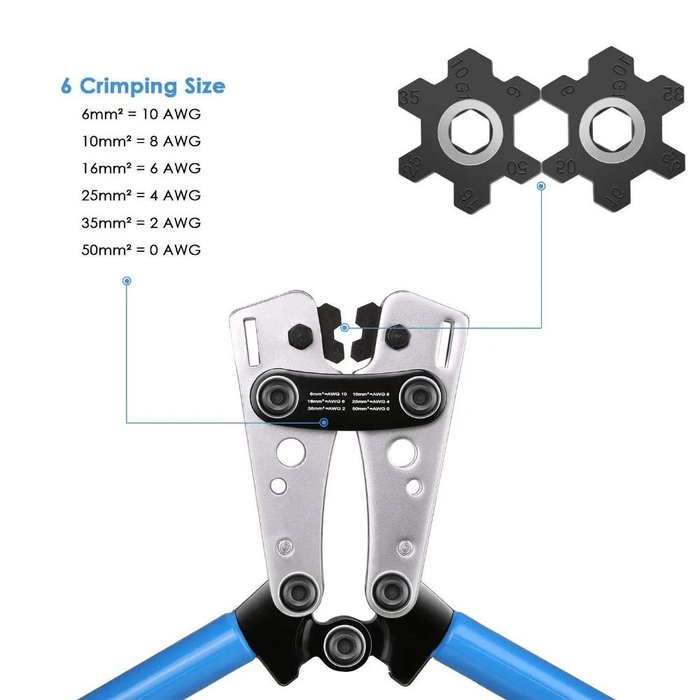 • Versatile Crimping Capabilities: Suitable for crimping battery terminals, cable lugs, and various wire connectors.