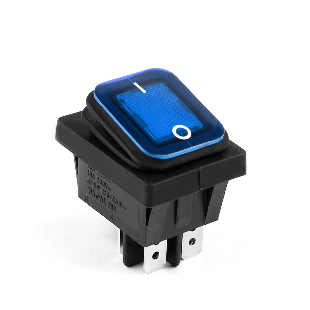 30A 12V CE ON-OFF Blue Illuminated 4 Pin 2 Position Rocker DPST Switch