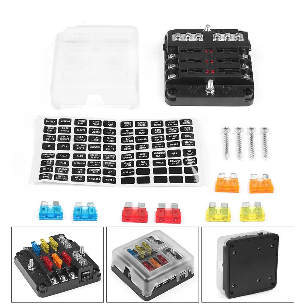 6-Way Car Boat Blade Fuse Box Block Holder LED Indicator 12V 32V Auto Marine Waterproof Power Distribution Panel Board