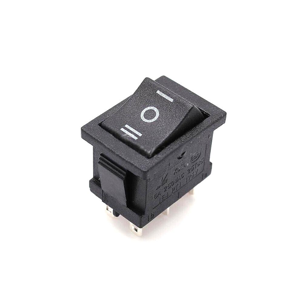 Black Rocker Switch ON-OFF-ON 6 Pin 21X15mm DPDT KCD1 6A/250VAC 10A/125VAC