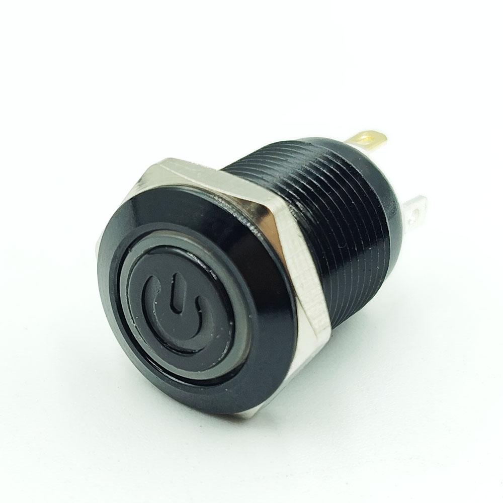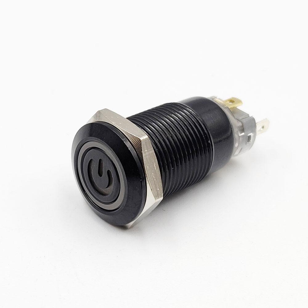 Flat Head 12mm 12-24V Power Symbol Power Non-Latching Red 4-Pins Black Oxide Metal Switch