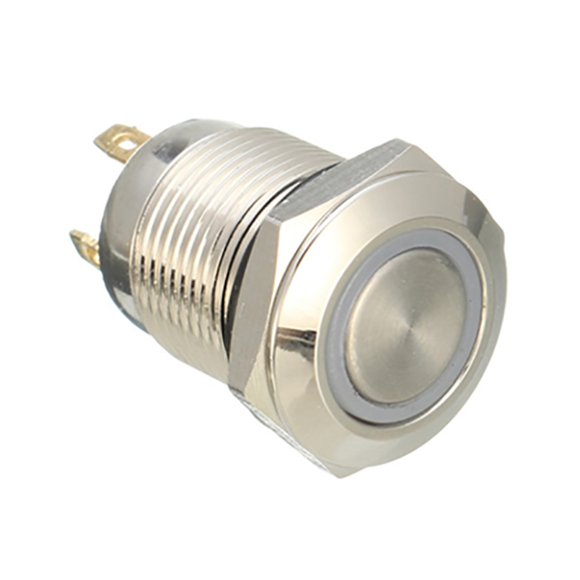 Flat head 12mm 12-24V Ring Light Latching Metal Push-button White