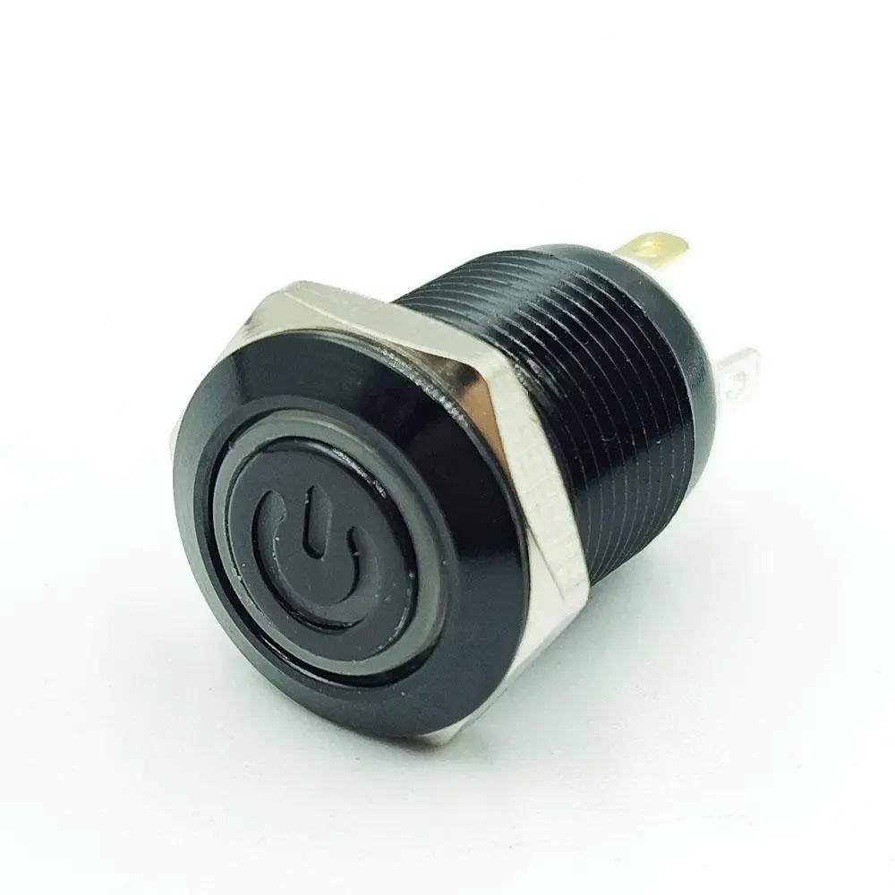 Flat Head 12mm 12-24v Power Symbol Non-Latching White 4-Pins Black Oxide Metal Switch