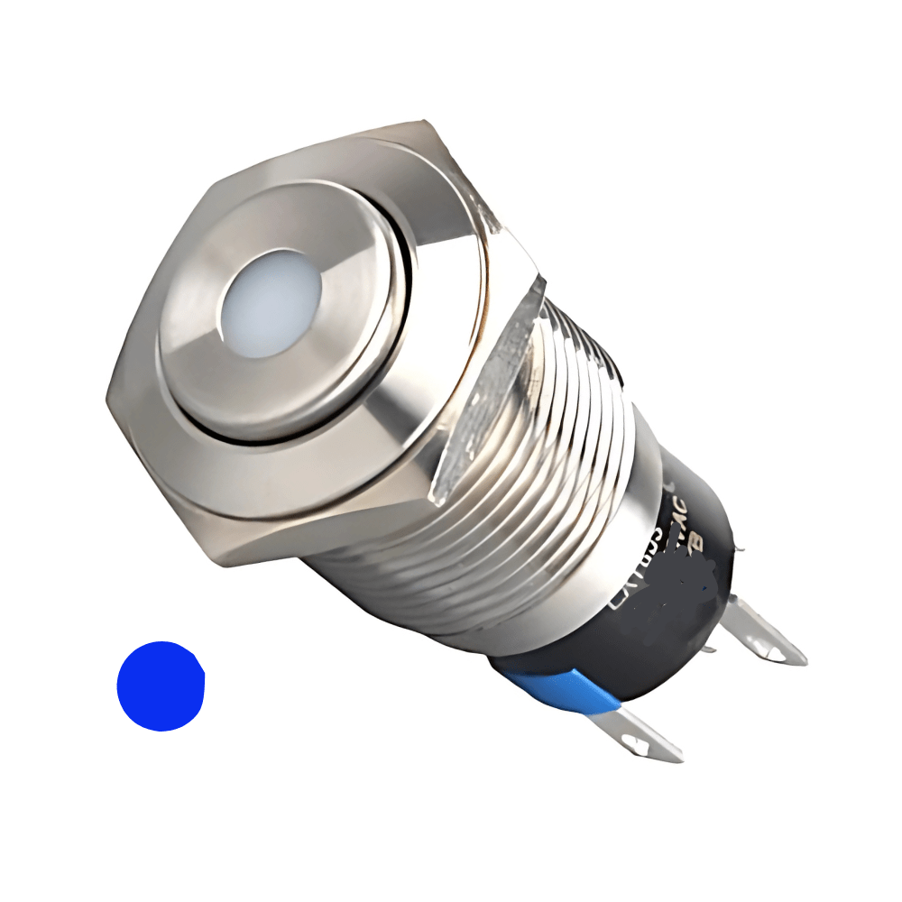 High Head 16mm 3-6V Non-Latching Blue Dot Illuminated Silver Metal Switch