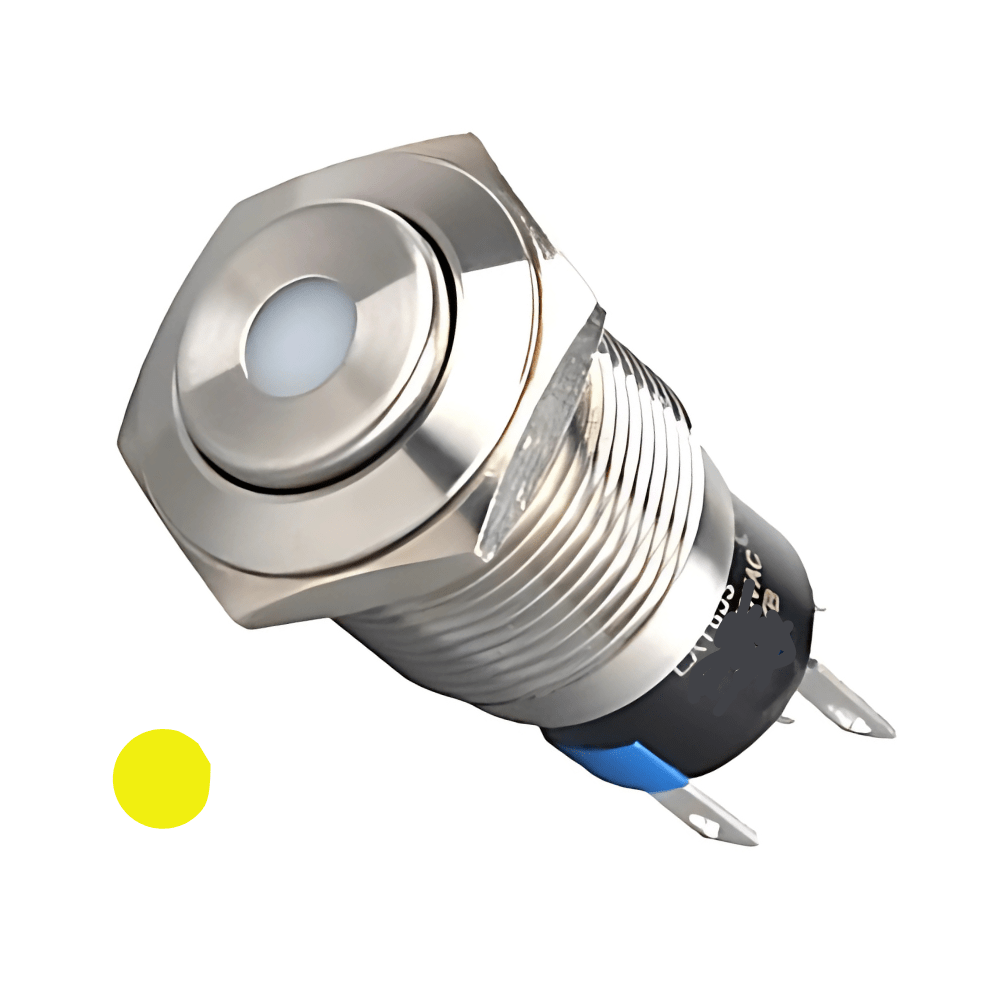 High Head 16mm 3-6V Non-Latching Yellow Dot Illuminated Silver Metal Switch